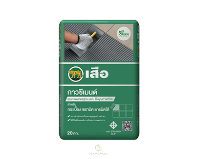 เสือกาวซีเมนต์ เขียว สินค้าคุณภาพดี จากตราเสือ ได้รับรองมาตรฐาน มอก. เป็นรายแรกในประเทศไทย เหมาะสำหรับปูกระเบื้องเซรามิค แกรนิตโต้ ขนาดสูงสุด 60x60 เซนติเมตร